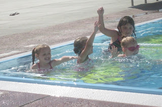 Abby took swim lessons at American Kids where she takes dance and gymnastics, but the once a week idea did not work too well for her. She would spend half the time getting use to the water again and only get a few minutes of real swim time. She always had to "go to the bathroom" even though we just went. So I pulled her out (it was expensive anyway) and July we put her in a two week course at Bakersfield College. She swam Monday-Thursday for 2 weeks and made a lot of progress. She had a lot of fun too.